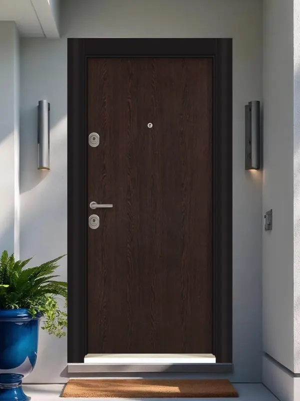 Блиндираната входна врата за къща съчетава елегантна визия с изключителна устойчивост на външни условия. Проектирана специално за монтаж на открито, тя осигурява високо ниво на сигурност, топло- и шумоизолация, като същевременно допълва екстериора със стил и характер. Идеалният избор за всеки дом, който търси надеждна защита без компромис с дизайна.